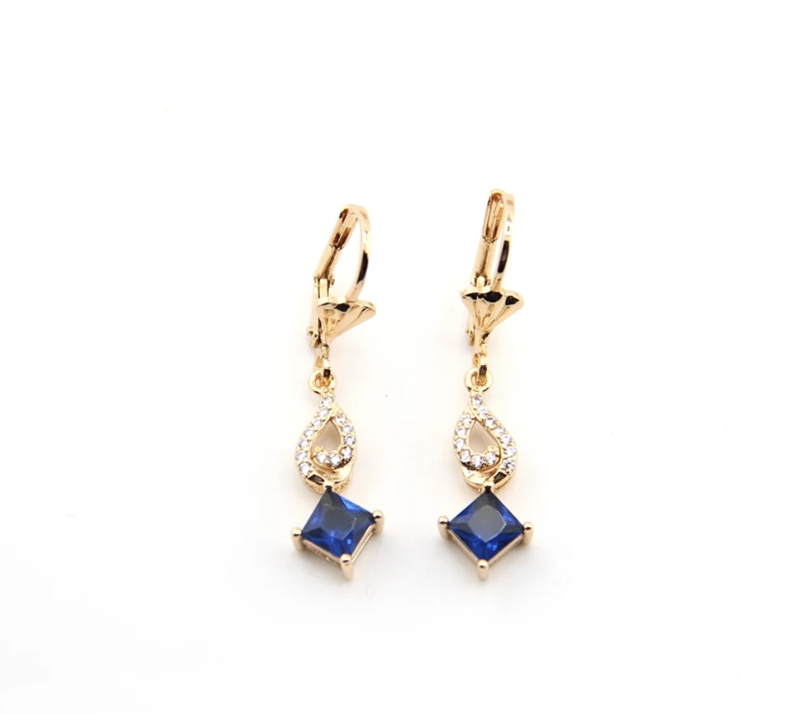 Pendiente bañado en oro, 24K, con piedra azul.